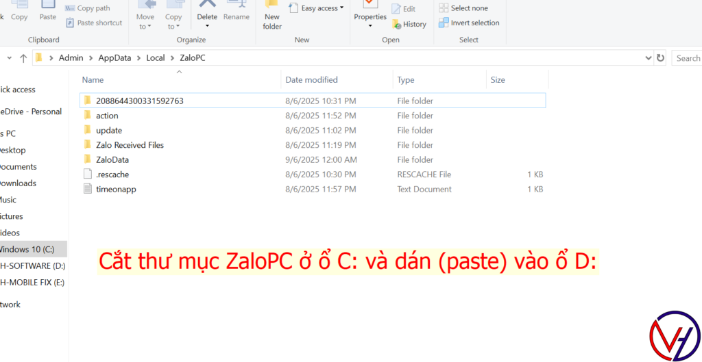Bước 3 : Di chuyển thư mục ZaloData từ ổ C: qua ổ bất kì , ví dụ ở đây là ổ D: