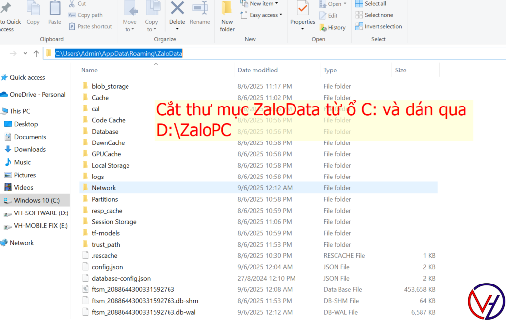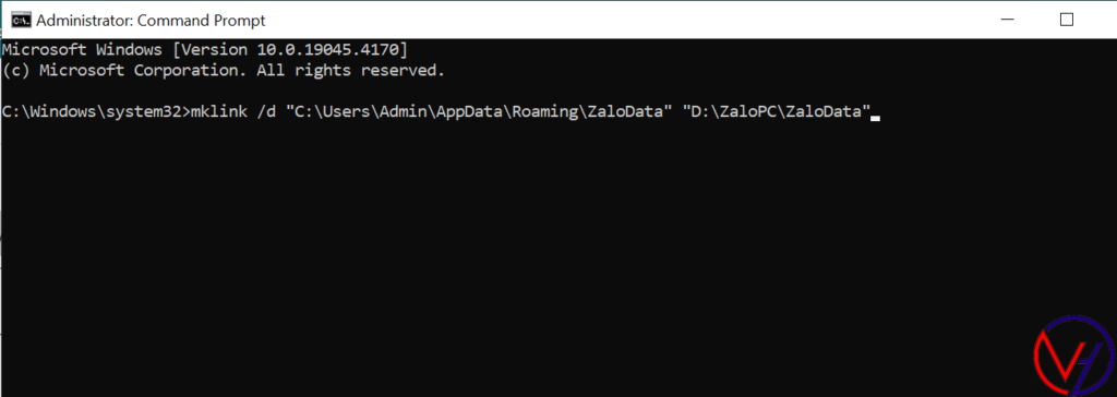 mklink /d “C:\Users\Admin\AppData\Roaming\ZaloData” “D:\ZaloPC\ZaloData”