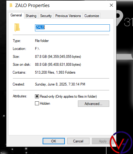 Đây là dung lượng mà phần mềm ZaloPC chiếm trên máy tính của chúng ta, sơ sơ nằm tầm khoảng gần 100 GB. (100 Gigabyte) .
