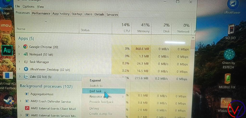 Chuột phải vào Zalo chọn End Task